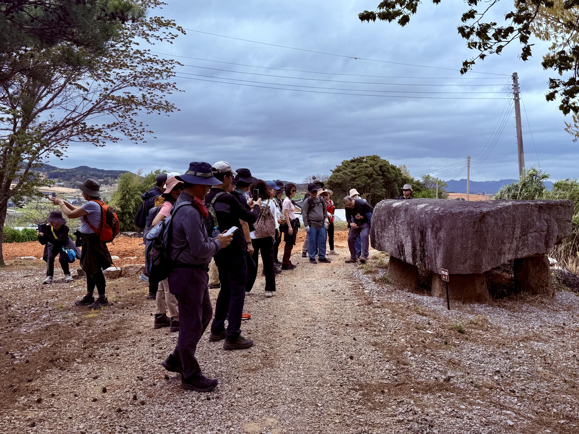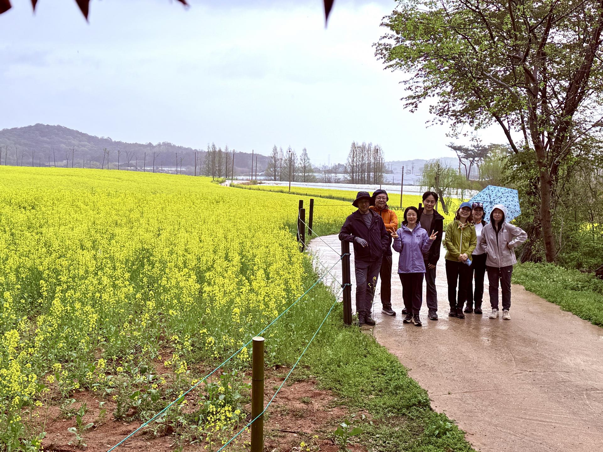 노란 애기똥풀 이 있는 길을 따라서 산 하나를 넘으니 옥녀가 옷감을 짰다는 백토 마을에 모정에서 신발을 벗고 쉬었습니다. 100 년의 역사가 넘는 초등학교, 고인돌의 별자리가 새겨진 곳을 지나 마을에서 운영하는 사회적 기업인별과소나무 카페에서 시원한 음료를 먹을 수 있었습니다. 그리고 제가 좋아하는 장소인 소나무와 고인돌 이 놓여있는 그곳에서 저 멀리옥 녀봉을 봅니다. 2코스 시작 지점 판정 마을에서 저 멀리 보이는 자작나무숲에 대해서 이야기 하였습니다. 잠시 뒤에 오시는 분들과 함께 가기위해 바람의 춤추고 있는 보리밭에 눈을 빼 앗 깁니다. 코스를 벗어나 흙이 있는 길로 두 개의 산소를 지나 선량 마을에 있는 고인돌을 또 봅니다. 그리고 약간의 흙 길을 지나 오늘의 도착지점인 고창농악 전수관에 도착합니다. 버스를 타고 6코스가 있는 학원농장으로 향합니다 비 오기 전에 5분 이라도 더 보여 주고 싶다는 생각 때문에 아주 싸게 싸게 걸음을 재촉 했었습니다. 비오고 바람불고 보리와 유채꽃은 춤을 추고 시간은 자꾸 가고 그런 날이었습니다. 그러나 그 모든 것은 다 추억이고 그 추억은 오랜 기간 아쉬운과 행복함으로 남아 있을 것 같습니다.여행을 몸으로 하는 독서라고 한다면 까미노 친구들과 한 권의 책을 읽고 이야기 하는 시간이었습니다. 급하게 진행 하는 관계로 많은 분들한테 자세하게 안내 드리지 못해서 미안합니다. 제 생각엔 서울 면적보다 넓은 고창을 최소한 삼일정도는 걷고 보셔야지 봤다. 라고 말할 수 있을 것 같습니다.